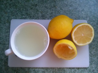 - Start your day with 1 cup of hot water and juice from 1/2 freshly squeezed lemon. Drink this first thing in the morning on an empty stomach. Wait 30 minutes before having anything else. The lemon water acts as a tonic to the liver and stimulates it to produce bile. It also acts as a dissolvent to help the liver flush out toxins, and improves stomach acid levels.
