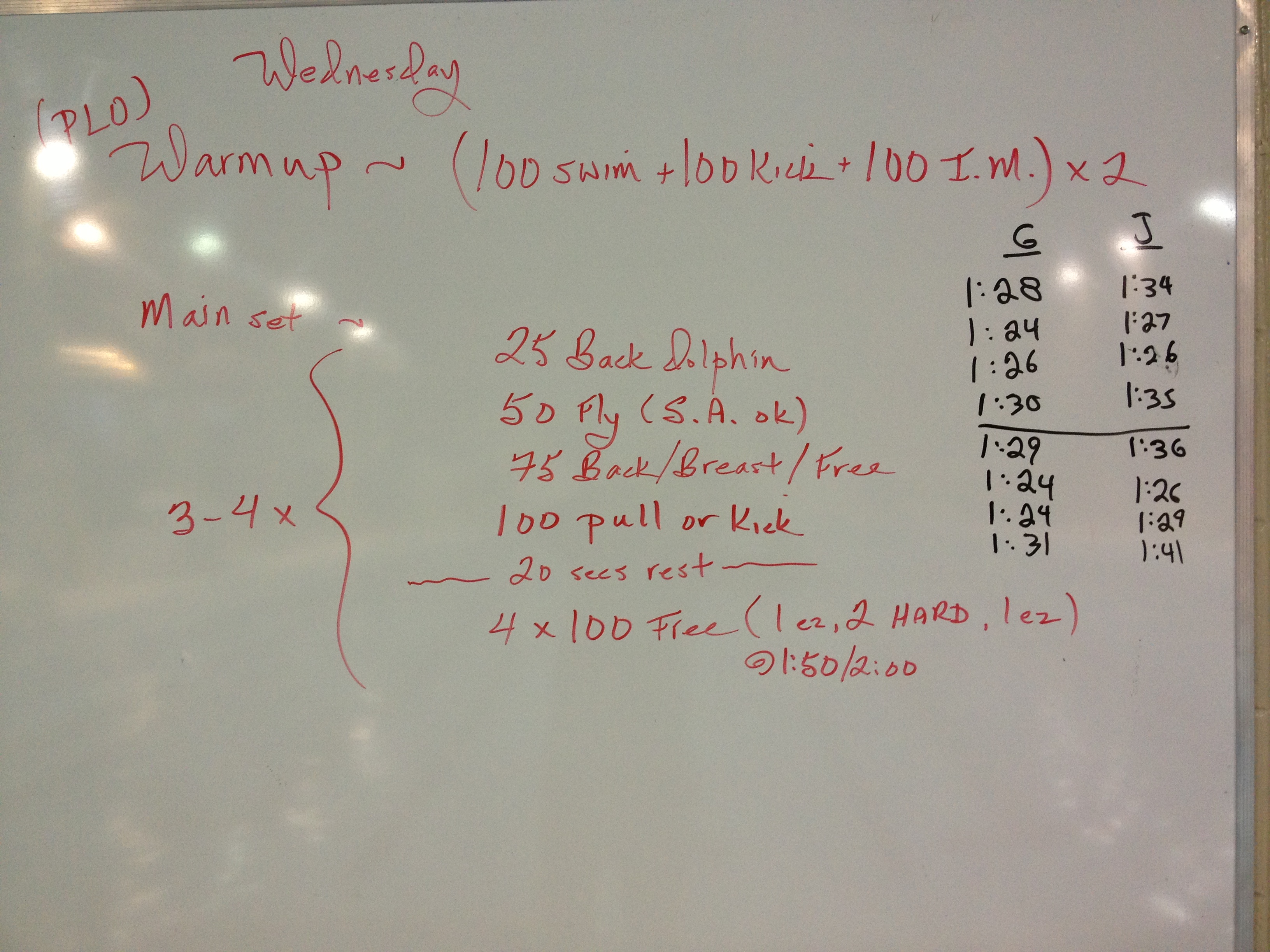 100m easy cool down (choice stroke)