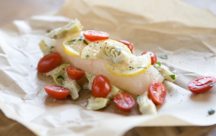 Halibut with Artichokes and Tomatoes