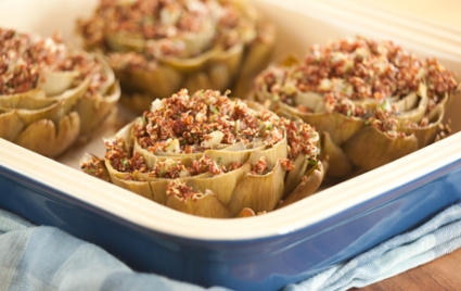 Baked Artichokes Stuffed with Red Quinoa