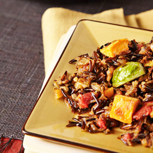 Wild Rice Pilaf with Sweet Potatoes and Brussels Sprouts